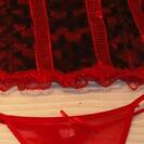 Guepiere nera trasparente con nastrino rosso...